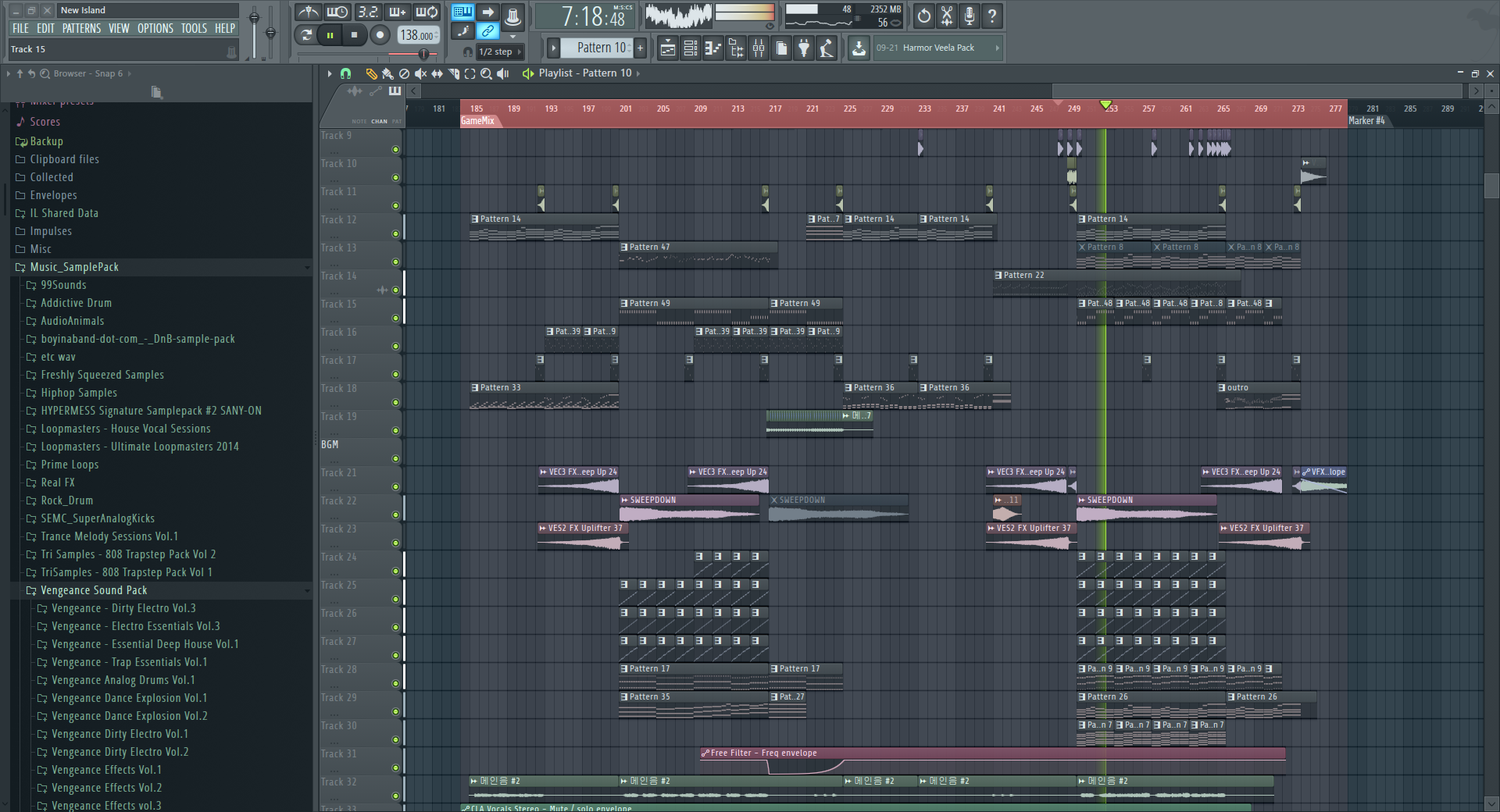 그리고, 패턴 에디터에 등록한다. 이 작업은 곡을 하나 만드는 것과 맞먹는다.