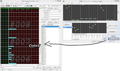 그리고, ⑩BMS 시퀀스를 카피 버튼을 눌러 노트 정보를 복사한 뒤, BMS 에디터에 그대로 Ctrl+V 해주자.