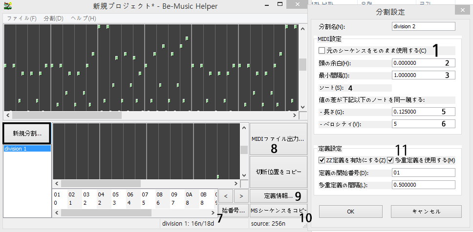 그리고 미디를 뽑고 bmhelper에 박고 '①원래 시퀀스를 그대로 사용하기'에 체크하여 OK를 누른 뒤 BMS 에디터에 넣어준 후, 다음의 절차를 취향껏 선택한다.