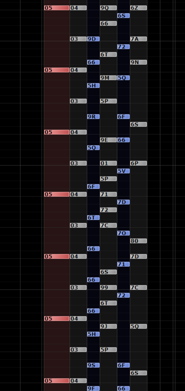 ④소트 - 노트를 어느 순서로 재배열할 것인지를 정한다. nn-음정 gate-노트의 길이 vel-벨로시티. 보통은 그대로 냅두고, 아래 설명할 오토메이션 걸린 악기를 뽑을때 건드린다.