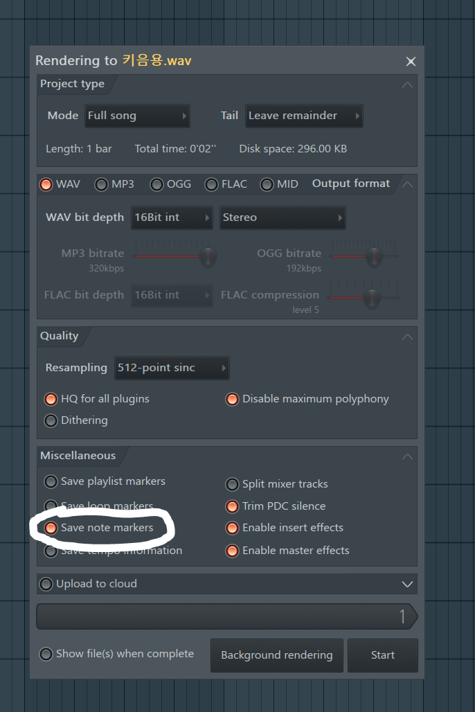 1. 키음 파일 추출할 때 Save slice markers 체크 (FL 상에서의 작업. 위의 방법을 참조.)