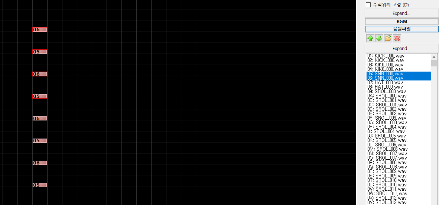 이런 식으로 키음의 재생이 중간에 중단된다면 '뚜두두두두두두두두두ㅜ두두ㅜㄷ둑'으로 대표되는 노이즈가 발생하는 것은 물론이고 특히 피아노의 경우 연주가 괴상하게 꼬여 음악을 망치는 원인으로 작용합니다. 이것을 어느정도 방지하기 위하여 같은 음원 파일을 여러 개의 키음 슬롯에 등록하고, 이를 에디터에 순서대로 1 2 1 2 혹은 1 2 3 4 1 2 3 4 순서대로 배치합니다. 음원의 길이가 길면 이렇게 해도 끊기는 것은 여전하지만, 그 주기가 길어져 이런 현상을 방지하는 데에는 확실히 도움이 됩니다.