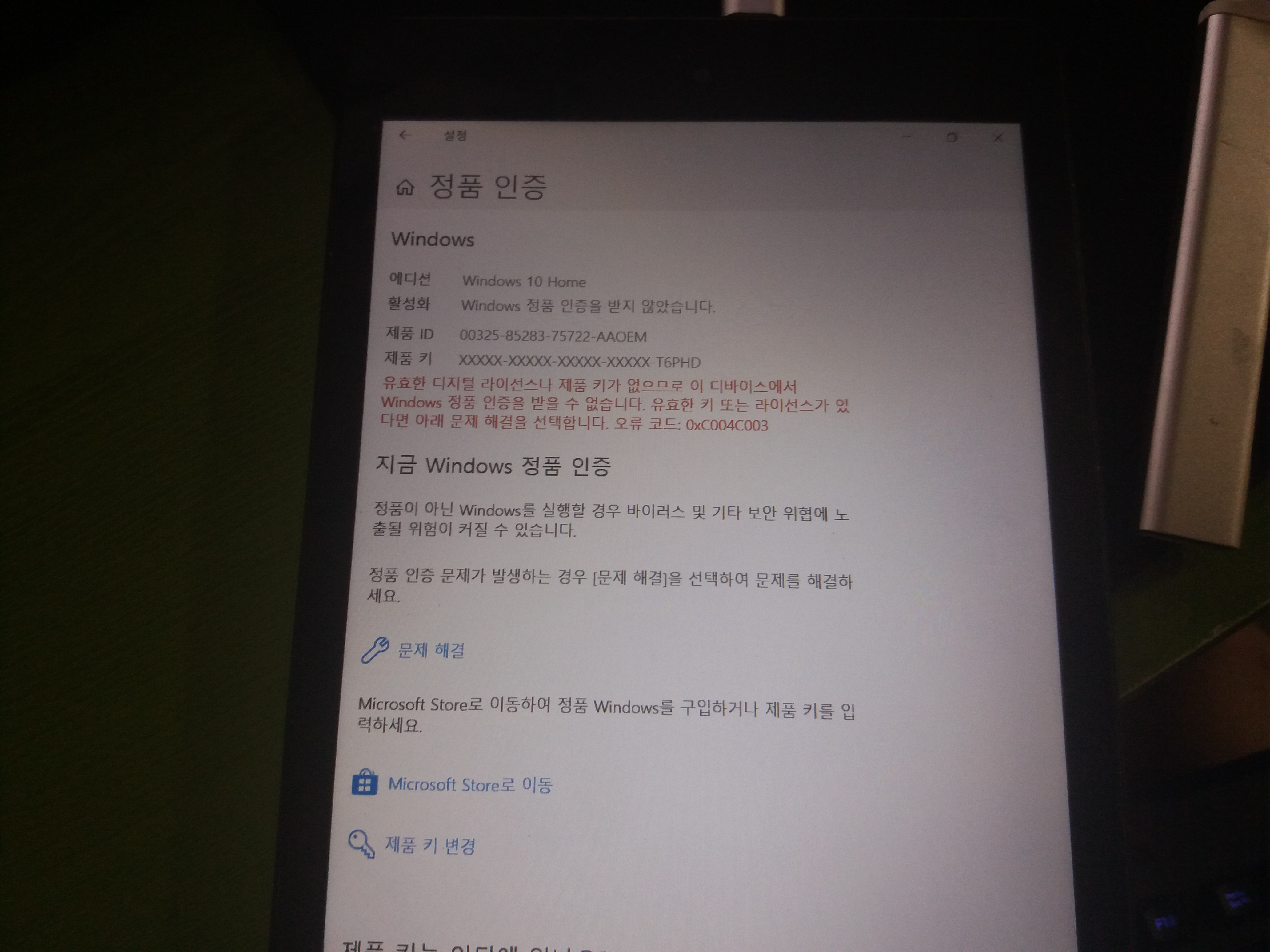 윈도우 정품 인증이 풀렷다...