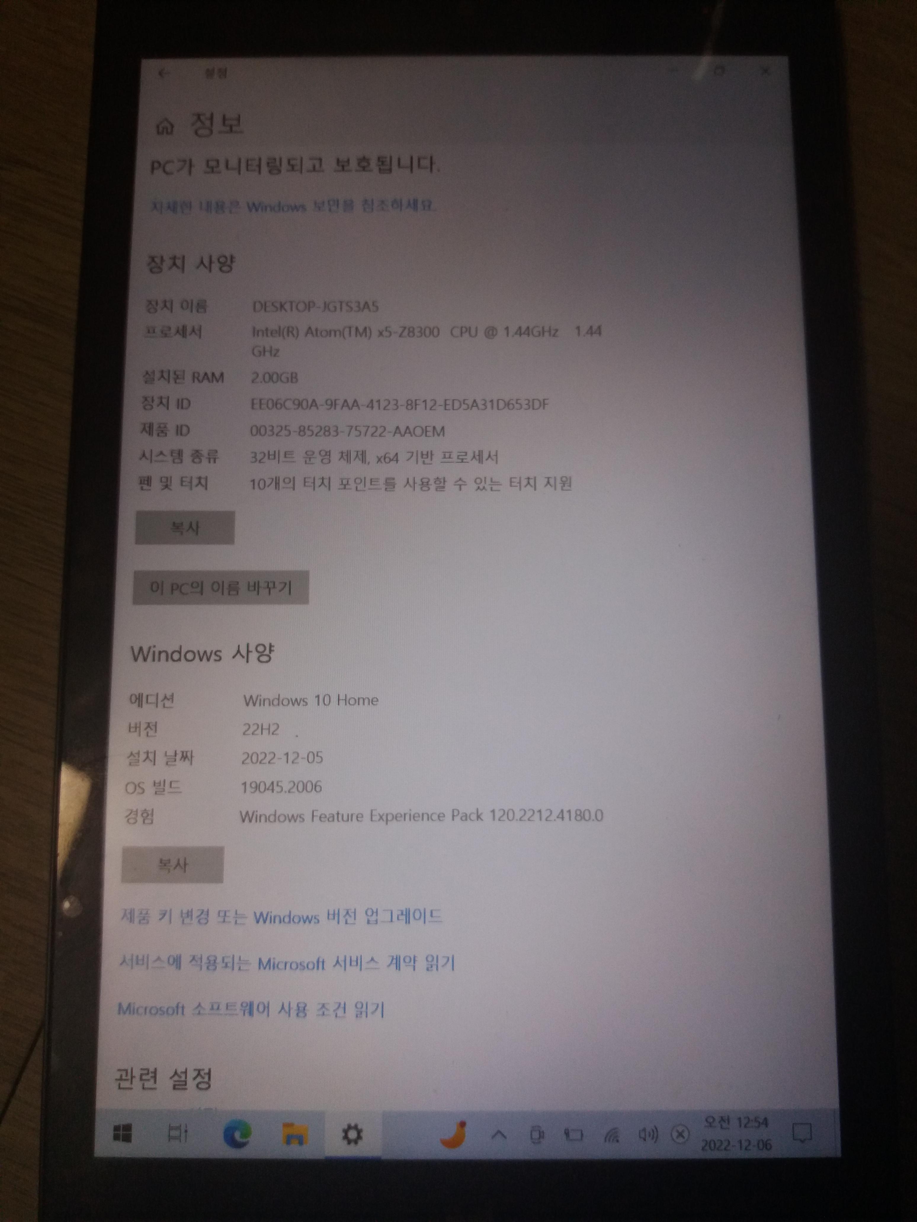 집에 굴러다니는 윈도우탭의 사양인 아톰 체리트레일.